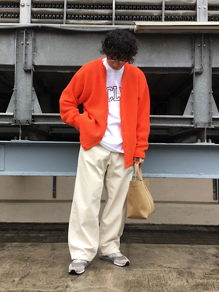 今回は色味が綺麗なSKOOKUMのカーディガンを羽織りました。ロンTやパンツもゆったりとしたシルエットをチョイスして、トレンド感のあるコーディネートでまとめてます!