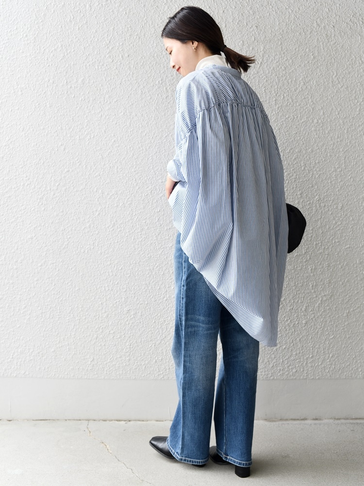 サイズ感:体型カバーができる、ゆったりとしたサイズ感。着丈は前後差があり後ろは膝丈くらいでした。