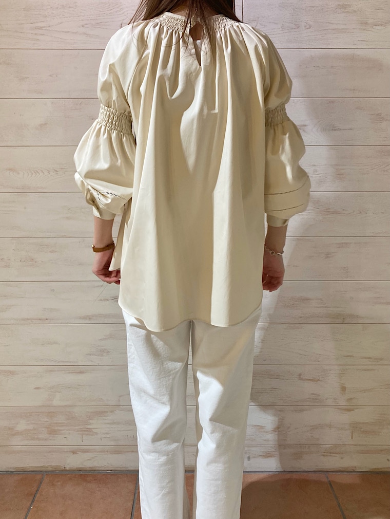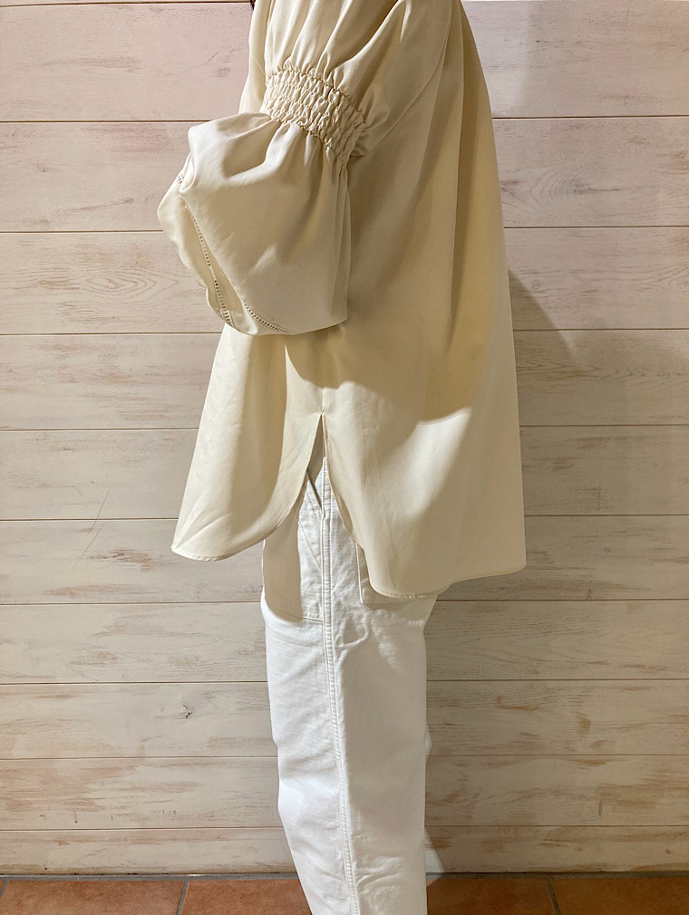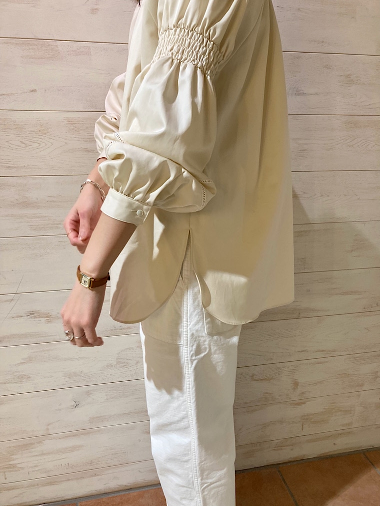 【サイズ感】着丈長めのゆとりのあるサイズです。腕のシャーリングは程よい締め付けなので窮屈に感じませんでした。