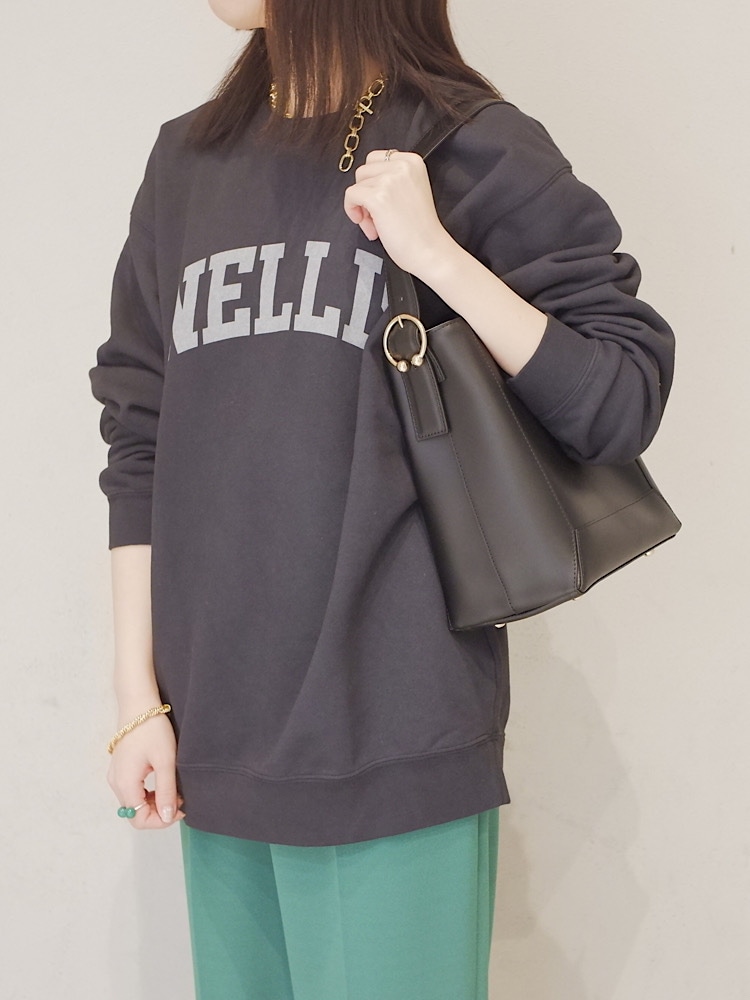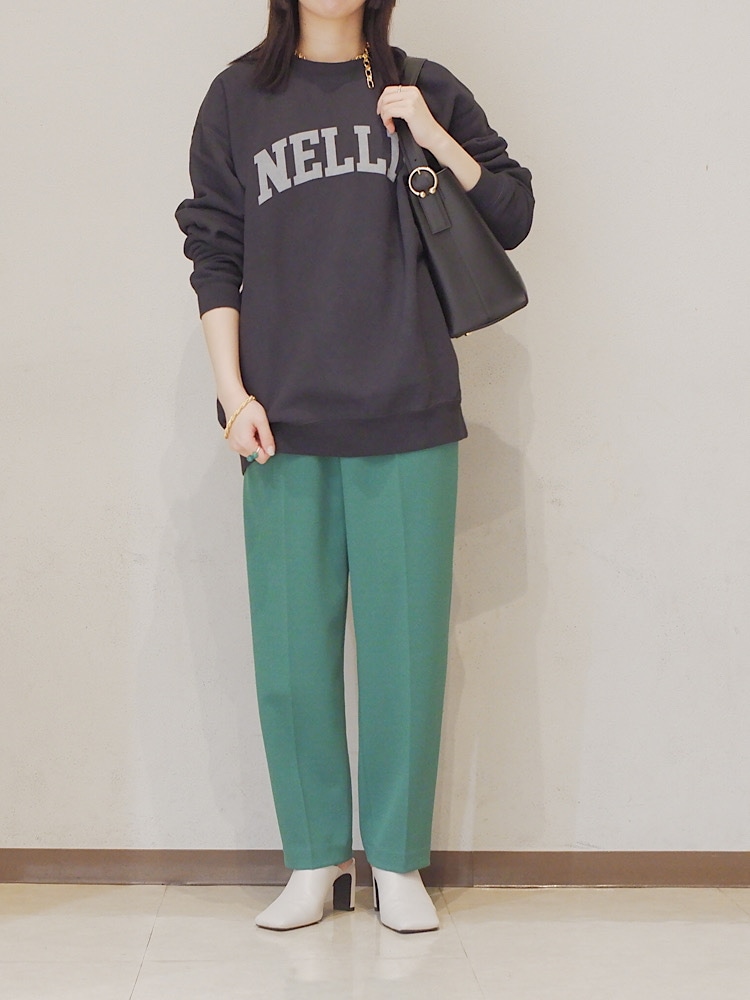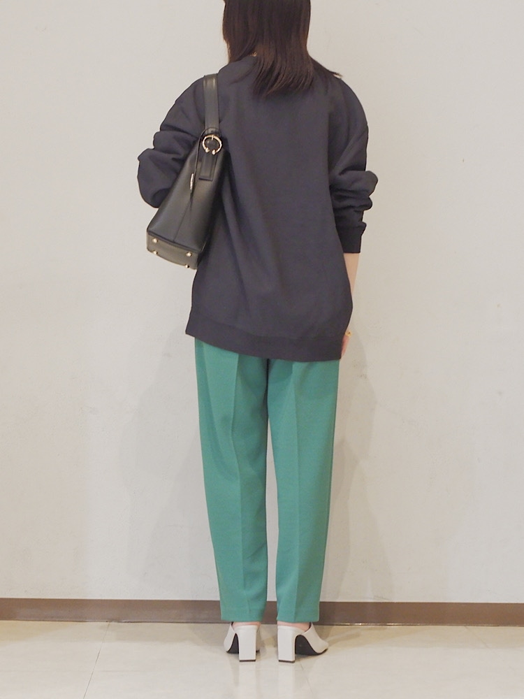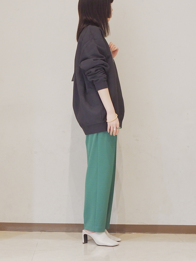 着心地: しっかりとハリコシのあるスウェット生地です。メンズライクなゆったりシルエットなので今年らしい雰囲気に◎
