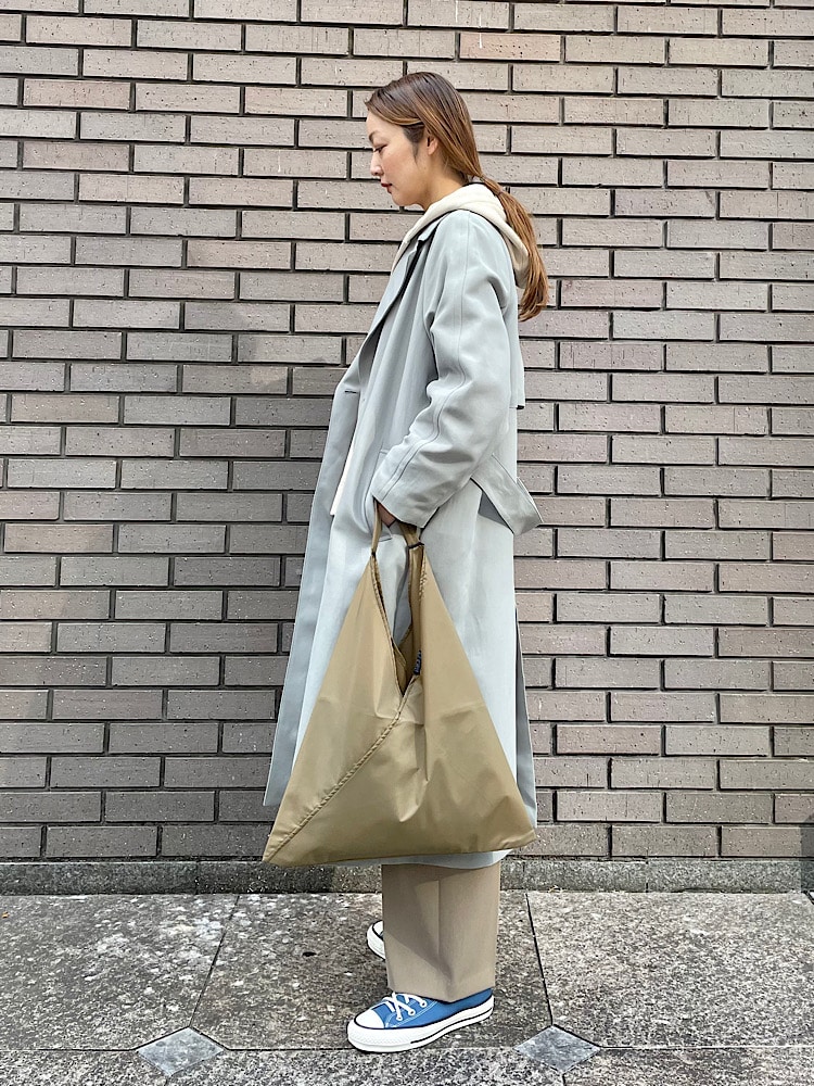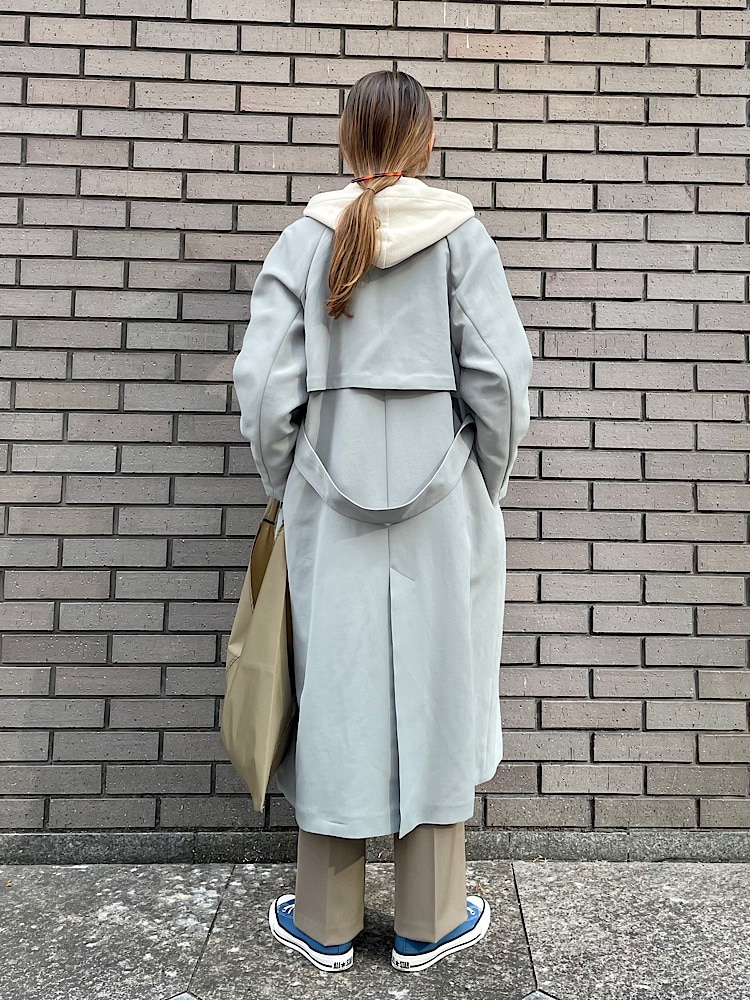 素材感・着心地:アセテート/コットンのやや厚みのある素材感。裏地は付いていませんが、肩周り、身幅共にゆったりしているので気温が低い時期は厚みのあるインナーの着用が可能です