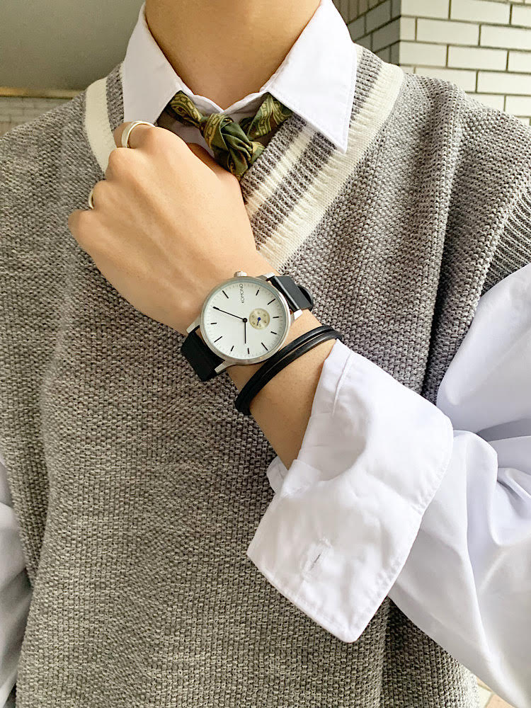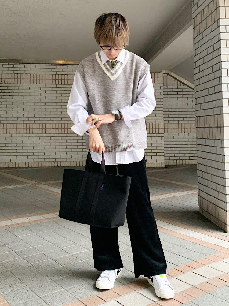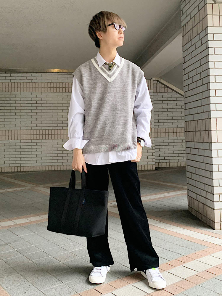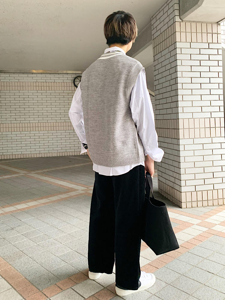 ユニセックスなチルデンニットベストで春の先取りコーデ!