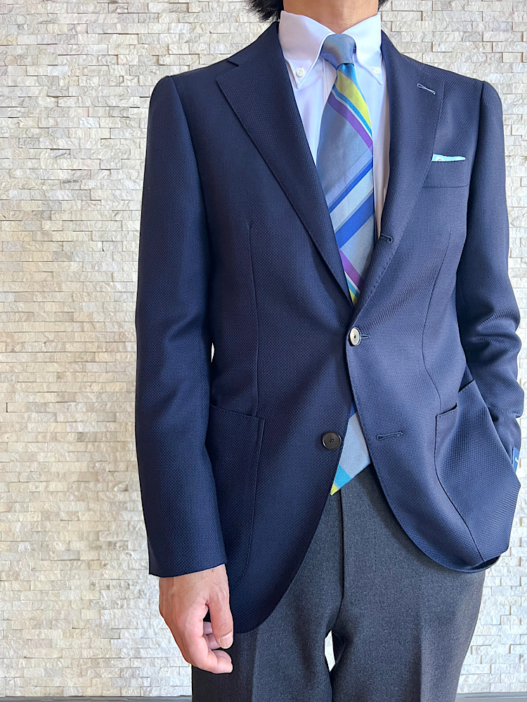 【コメント】 定番カラーのジャケット・パンツスタイルに、色鮮やかなネクタイを添えて。
