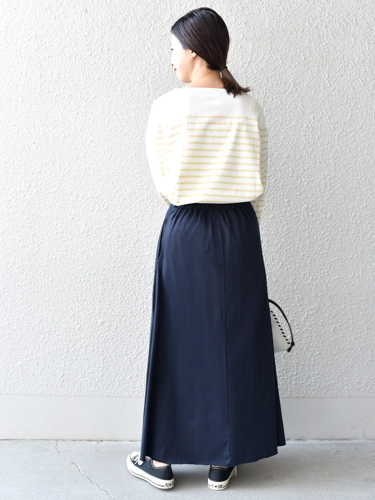 着心地:肩回りがゆったりとしていて窮屈感がなく、着心地◎飽きのこないデザインなので、ロングシーズン活躍するアイテムです。