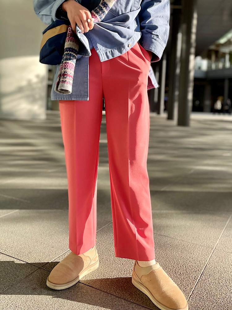 ・着こなしポイント: ウエスト部分のゴムが気になられる方は、ゆったりとしたトップス合わせがおすすめです