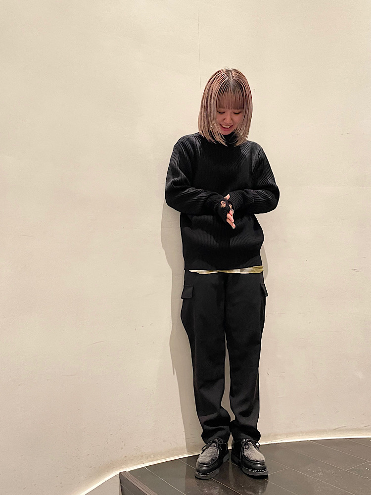 【素材感・着心地】しっかりとした生地のなかにも柔らかさを感じさせる、ローゲージニットとは思えない着心地です。