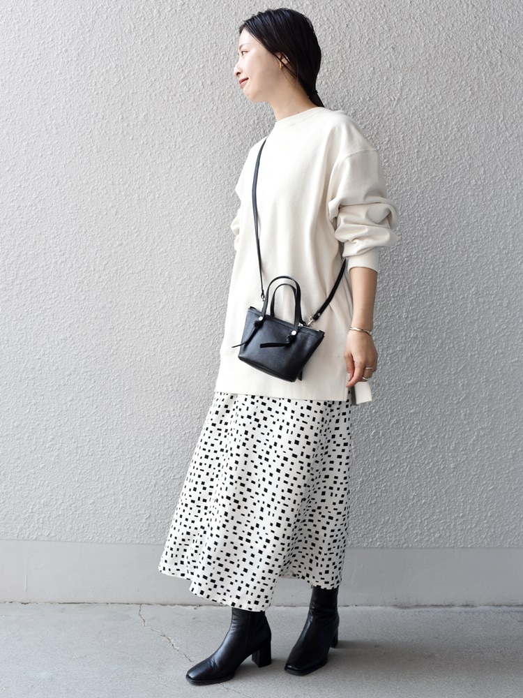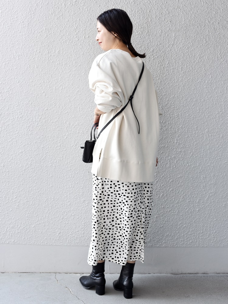 幾何プリントがアクセントになった、モノトーンコーデ♪