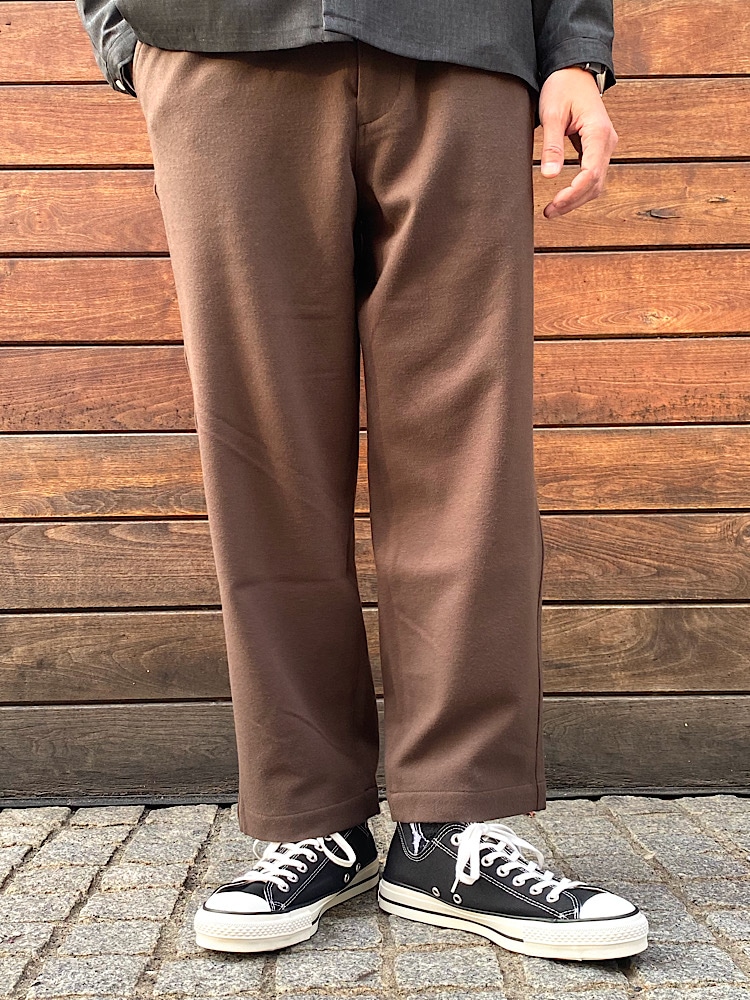 素材感/着心地:レーヨン混で落ち感がありますがシルエットは綺麗にでます。太めですがテーパードしてるのでだらしなく見えません。