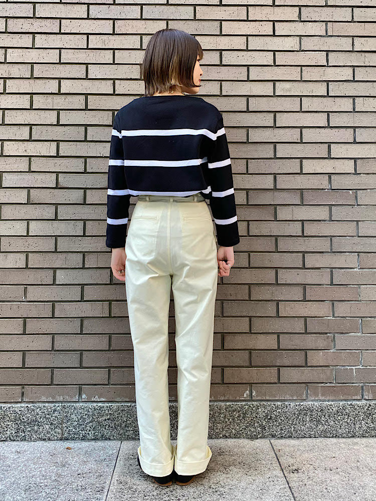 やや肉厚なトップスをインして、ウエストはジャストでした