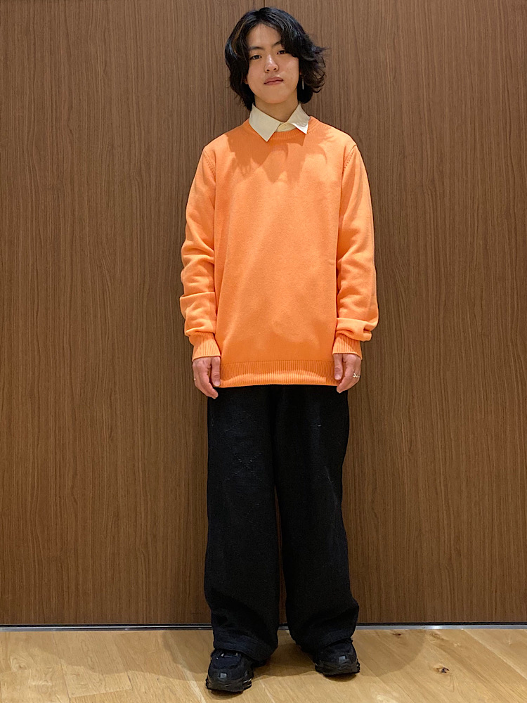 サイズ感:袖丈は少し溜まりますが、他の部分は大きすぎることなく程よいオーバーシルエット感で着ていただけるかと思います。