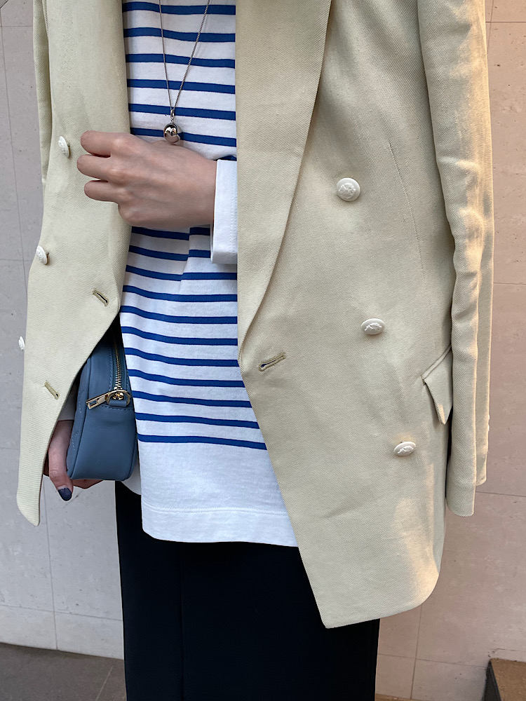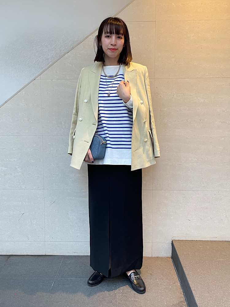 着心地:ベーシックなボーダーです。サイドにスリットが入っており、インしなくても綺麗に決まるシルエットです。