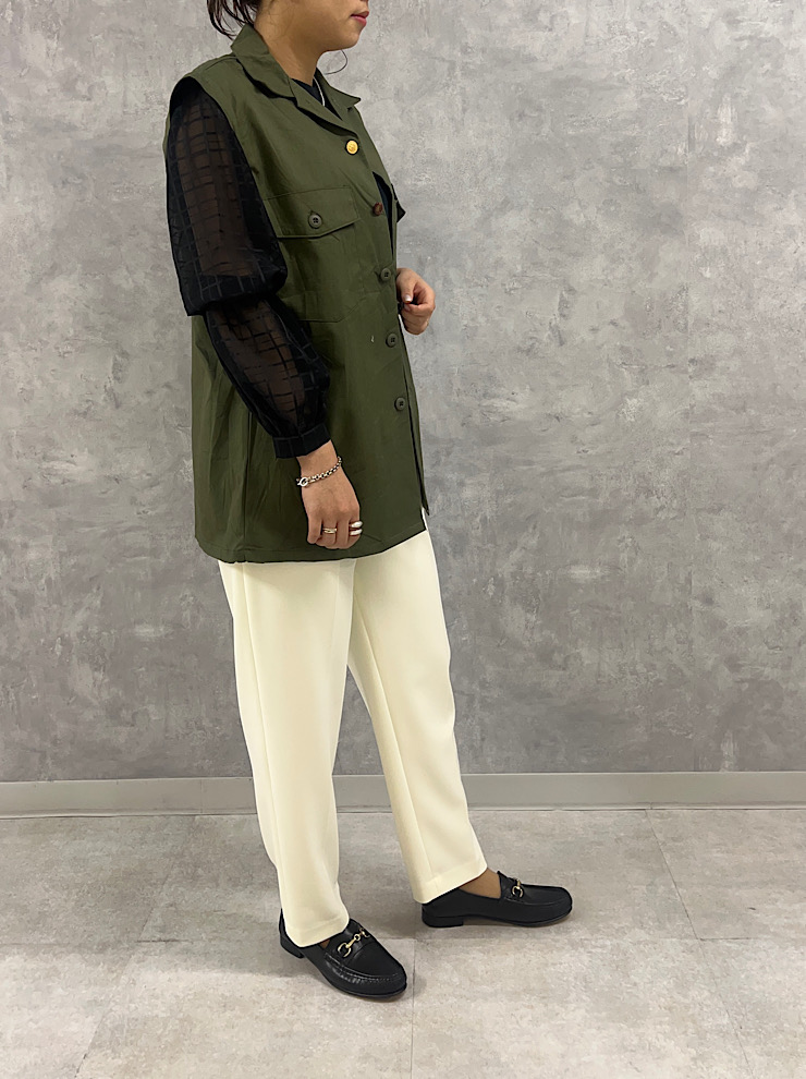 ゆったりとしているので、ニットやシャツなども着込めます。