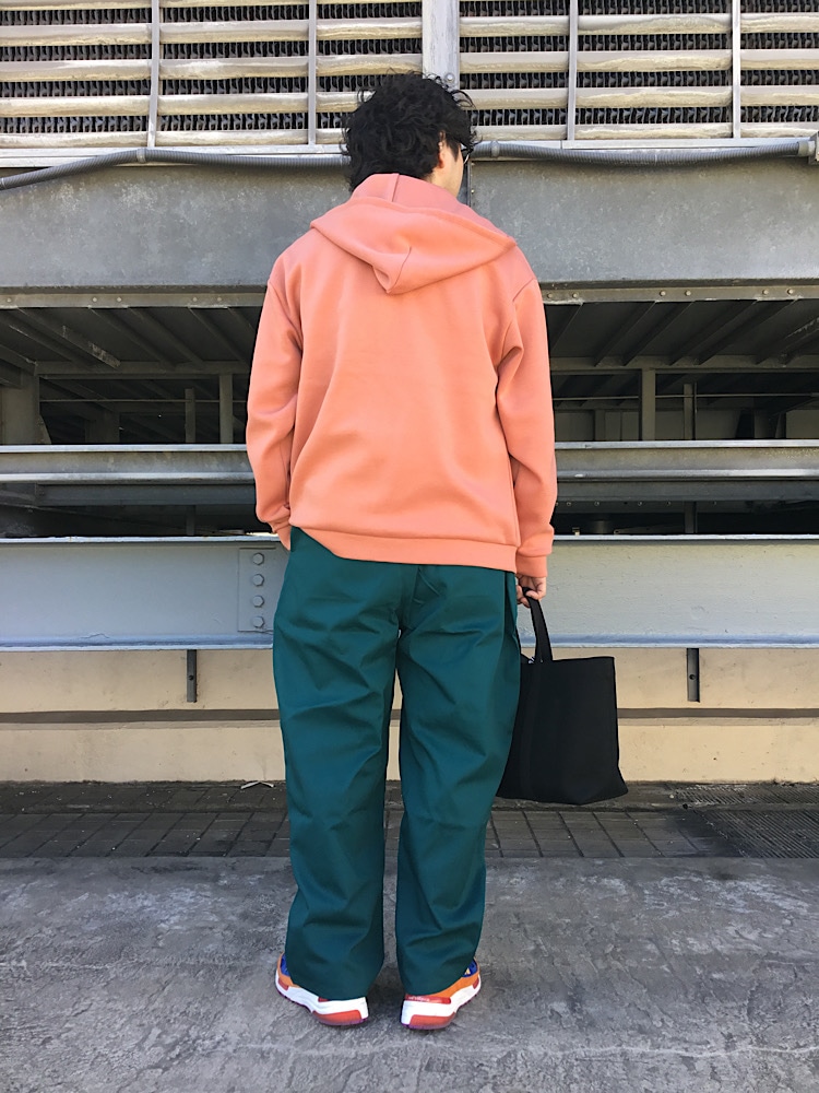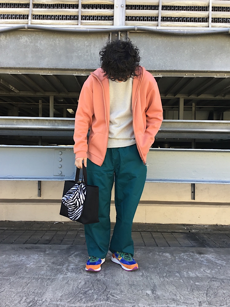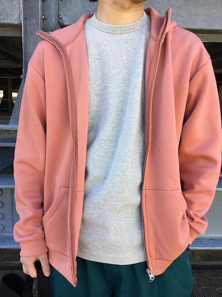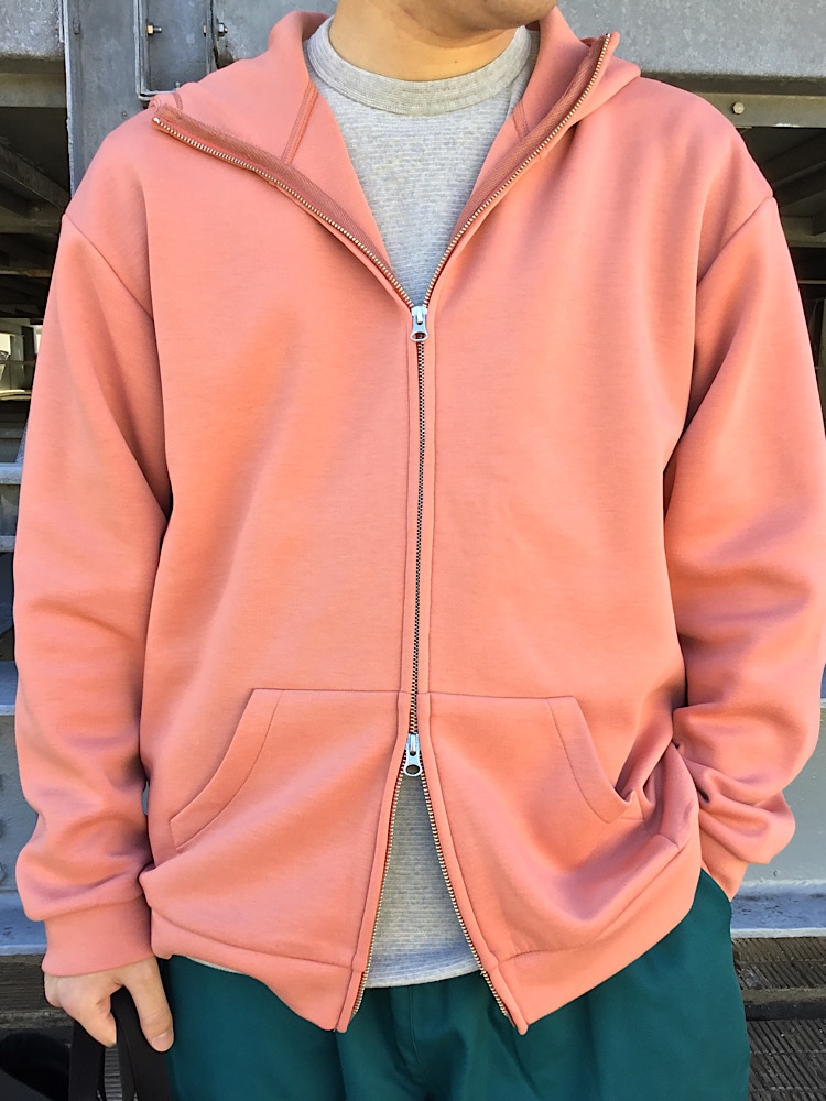 ポンチ素材のzipパーカーが入荷しました!色遊びで都会的なコーディネートを意識してます。