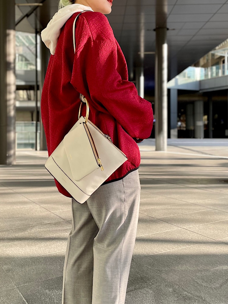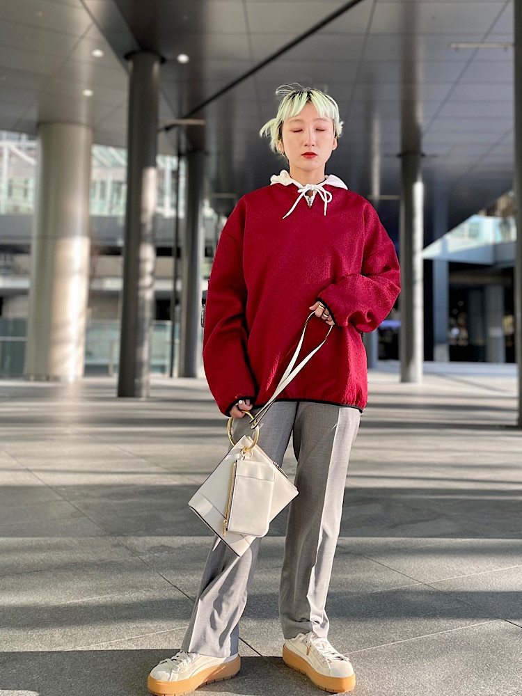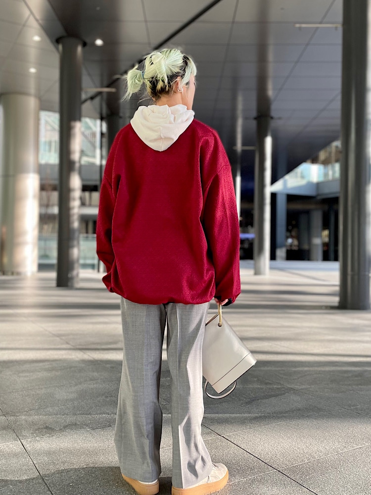 ・着こなしポイント: 主役になるカラーなので、他のアイテムはベーシックカラーで