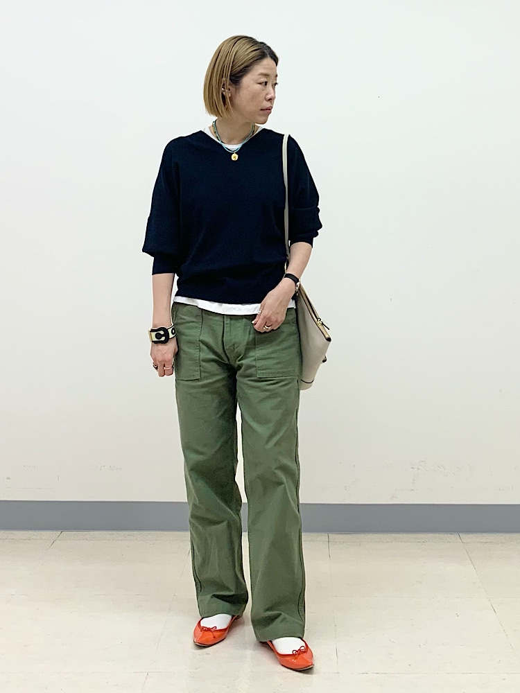 着心地:適度な厚みの素材ですが、硬くはなく、ゆとりもあるため、履きやすいです。合わせるトップスで季節感は変えられるので、通年履くことができます。履きこむごとになじみ、洗濯を繰り返すことで味が出る素材。