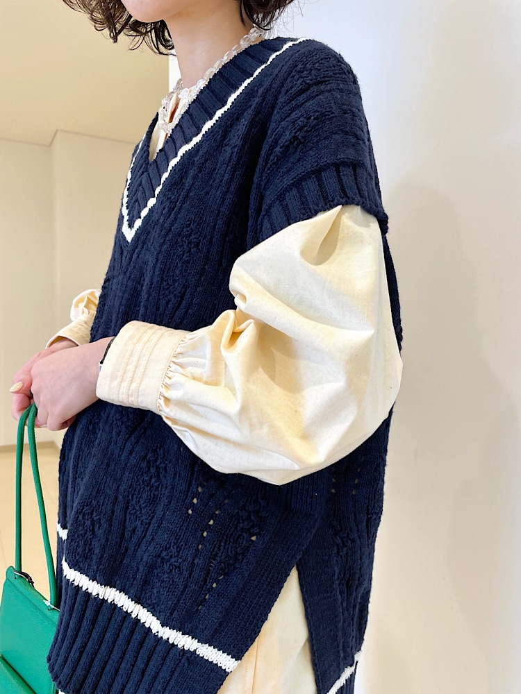 ゆったりとしたシルエットなので、いろいろなインナーとレイヤードが楽しめます。