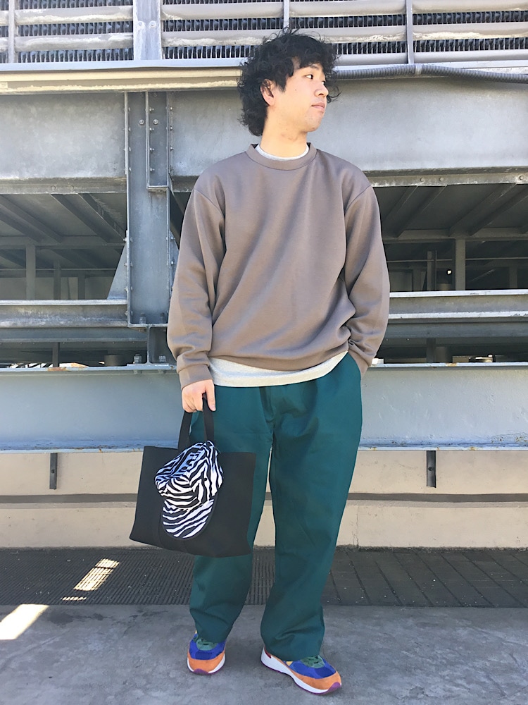 先取りで春夏アイテムが少しずつ入荷しています!今回はポンチシリーズのクルーネックプルオーバーを合わせたコーディネートです。