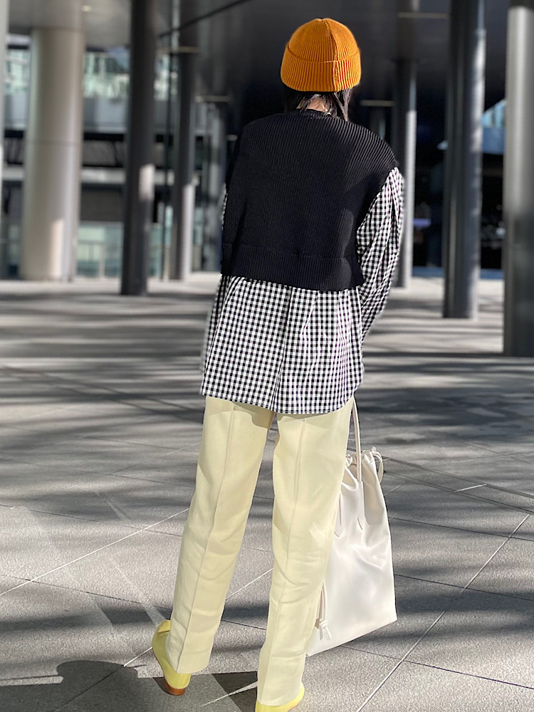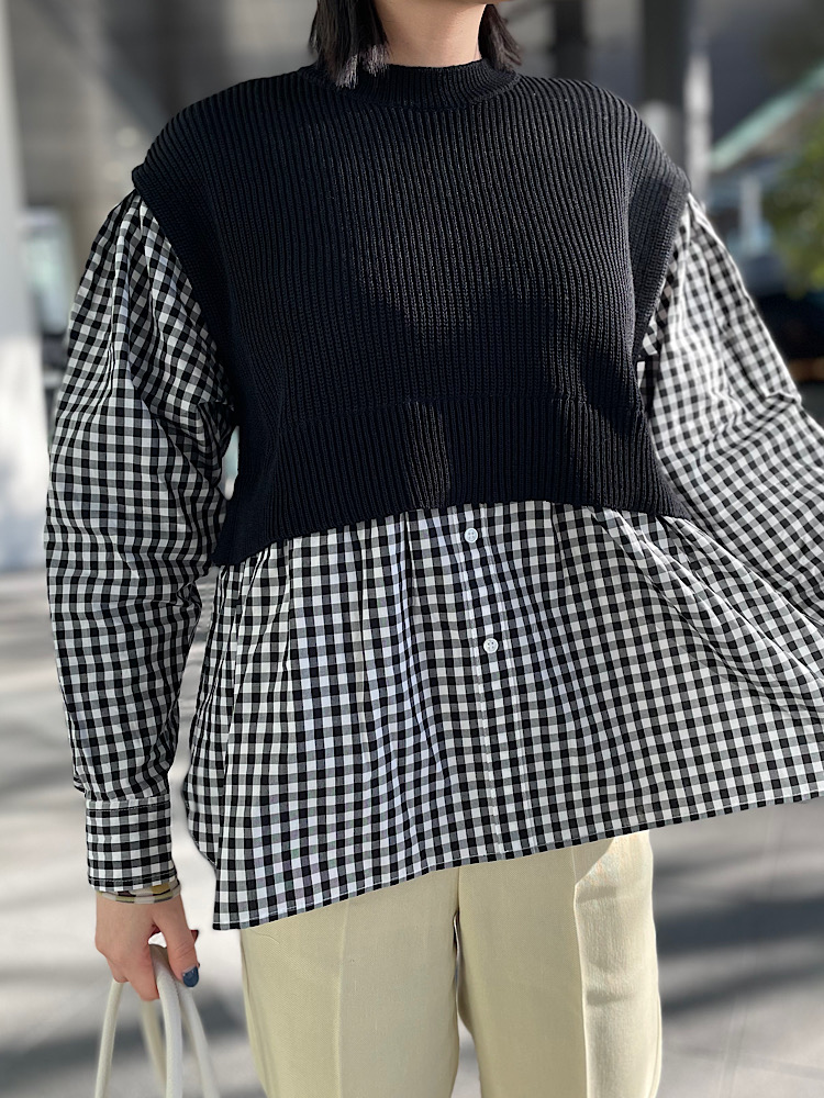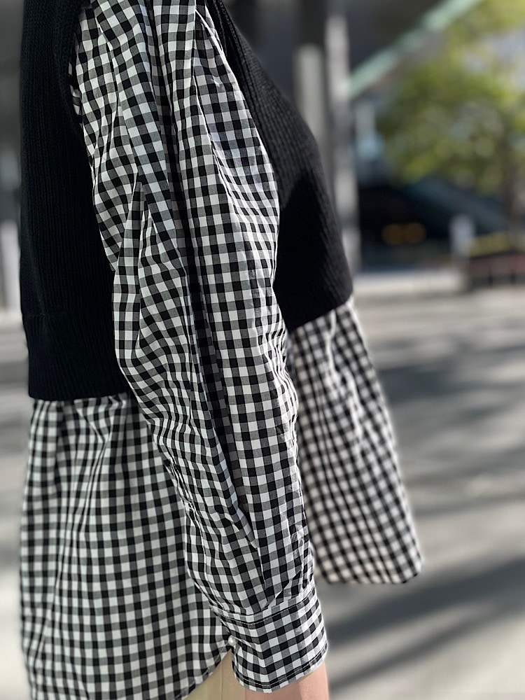 ベスト部分がショート丈でシャツがフレアシルエットでもすっきり
