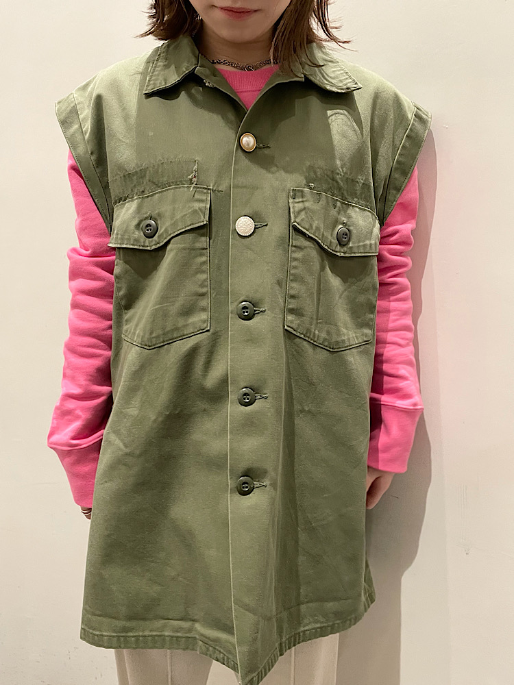 商品紹介:身幅は少しゆとりがありますが、袖が肩に沿って落ちてくれるので小柄な方でもスッキリとした見た目で羽織っていただけます。ボタンがアクセントになっているのでキレイめなシャツやカットソーとも相性がいいです。