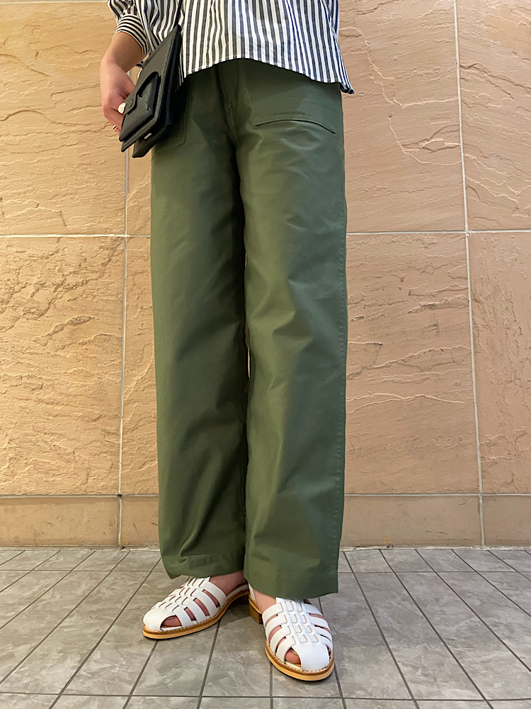 サイズ感:丈が長めなので164cm、36着用でもフルレングスで履ける丈感です。ウエストが両端で絞れるようにボタンが付いているので、一段階詰めて調整できるのも嬉しいポイントです。