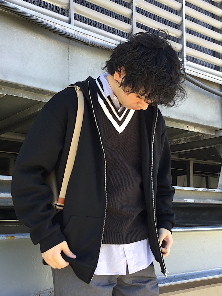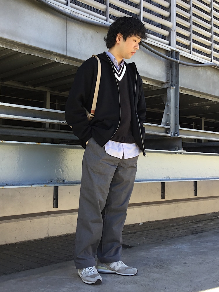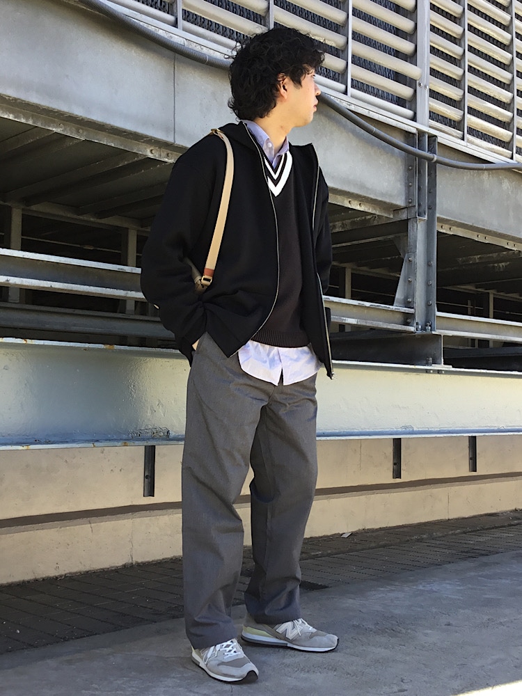 今回は最近入荷した新作アイテムをメインにコーディネートしました。春先に大活躍するチルデンベストとポンチのZIPパーカーを羽織って重ね着しました!