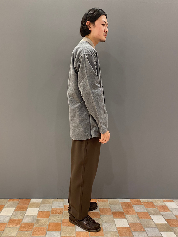 【素材感・着心地】ポリエステル、レーヨン、ポリウレタン素材です。ワイドテーパード型で丈はあまり長くないので、シルエットを崩さずに履けると思います。