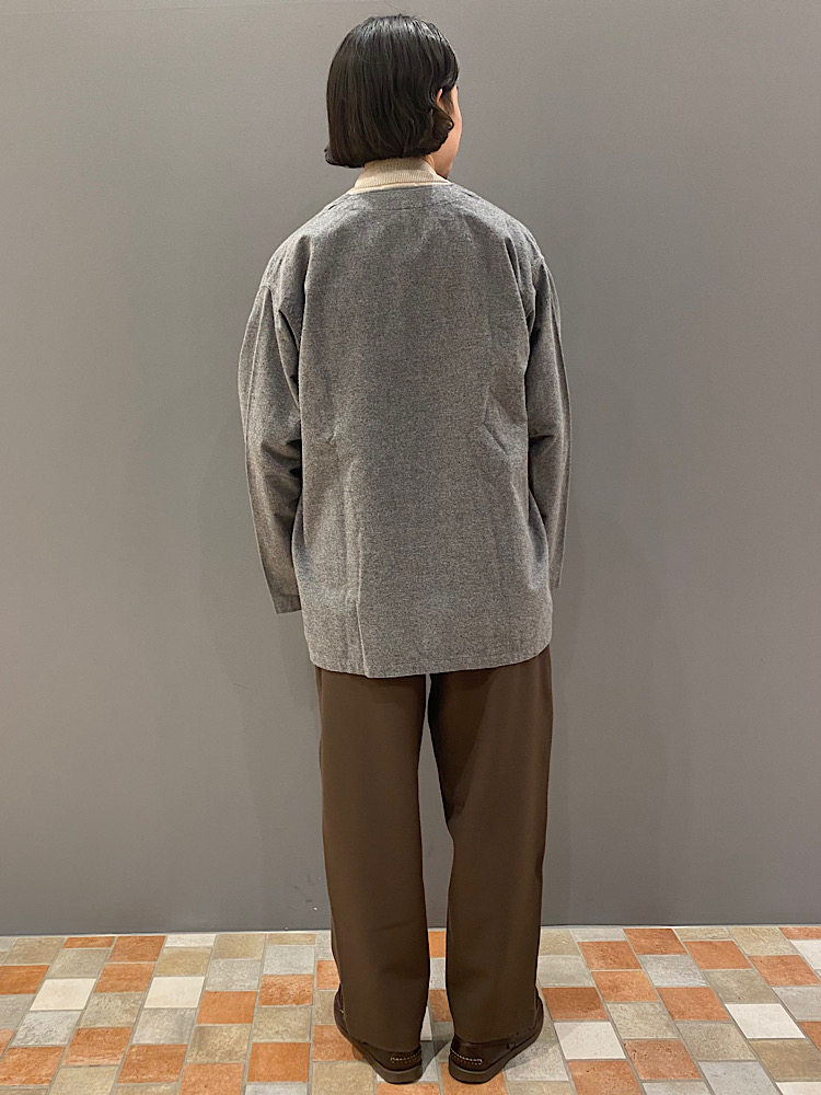 【素材感・着心地】コットン素材です。カーディガンのようなデザインで、インナーだけでなく羽織りとしてもオススメです。今時期は、ネックのあるニット合わせが良いと思います。
