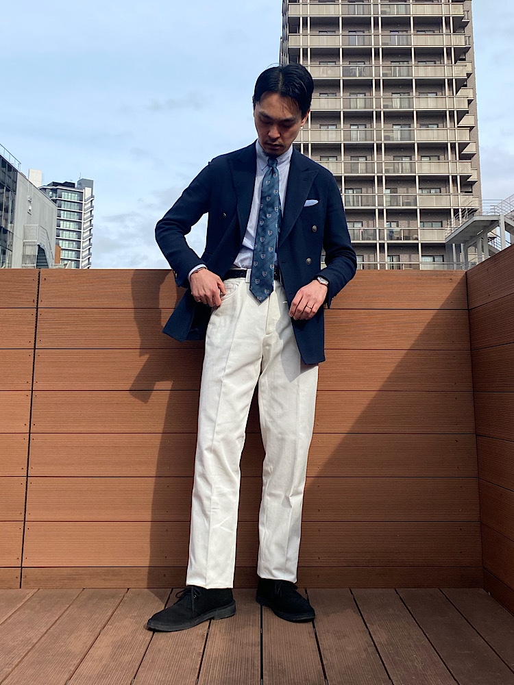 【素材感・着心地】打ち込みのしっかりしたコットンツイル生地。シルエットと合わさって落ち感がきれいに出ます。