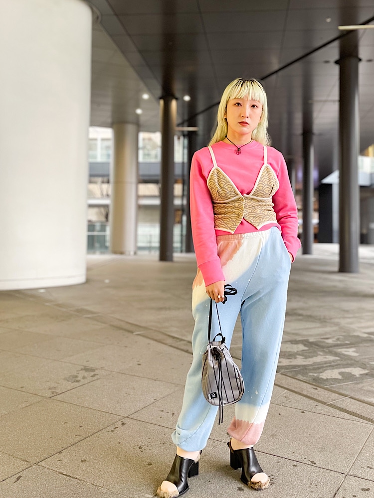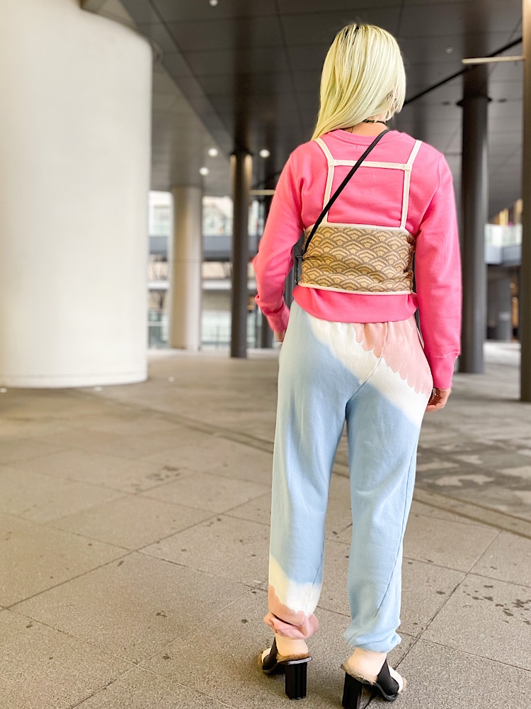 ・着こなしポイント: スウェットパンツがカジュアル感がでるという方は、足元を女性らしくするとスタイルアップにもなります