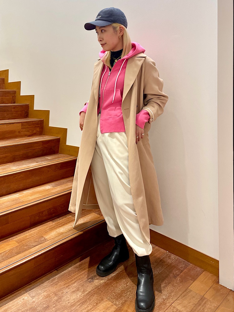 サイズ感: 全体的にゆったりとしたサイズで、膝下ほどの丈感。