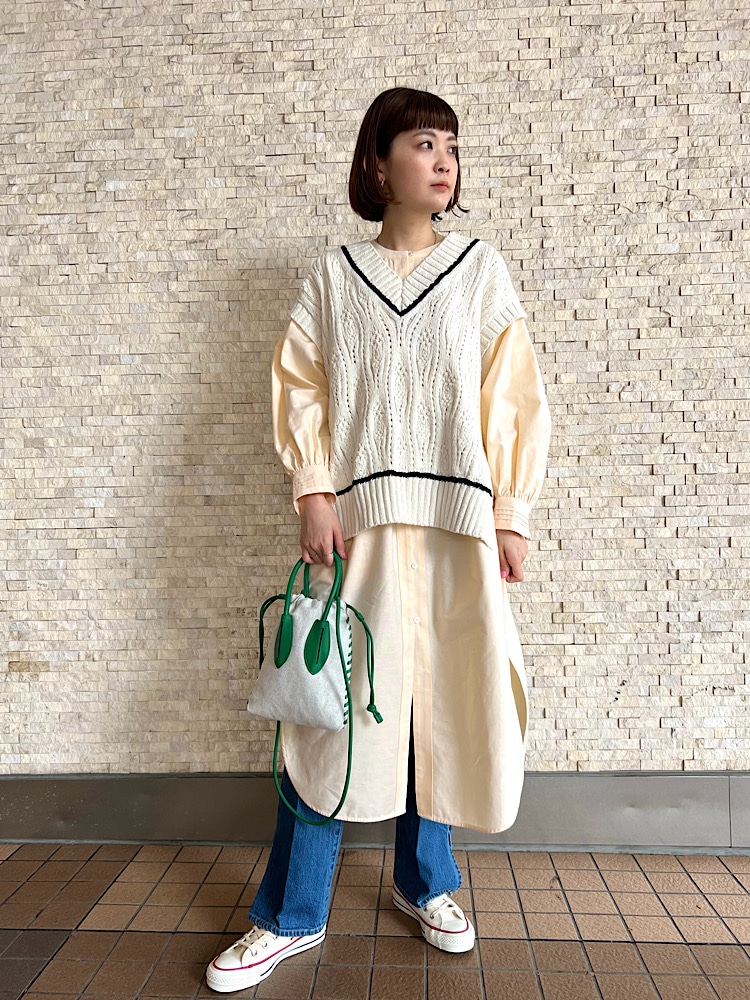 素材感:着心地:透かし編みのベストです。トラッド過ぎない雰囲気で今年らしく着られます。コットン100%でお洗濯も可能です。