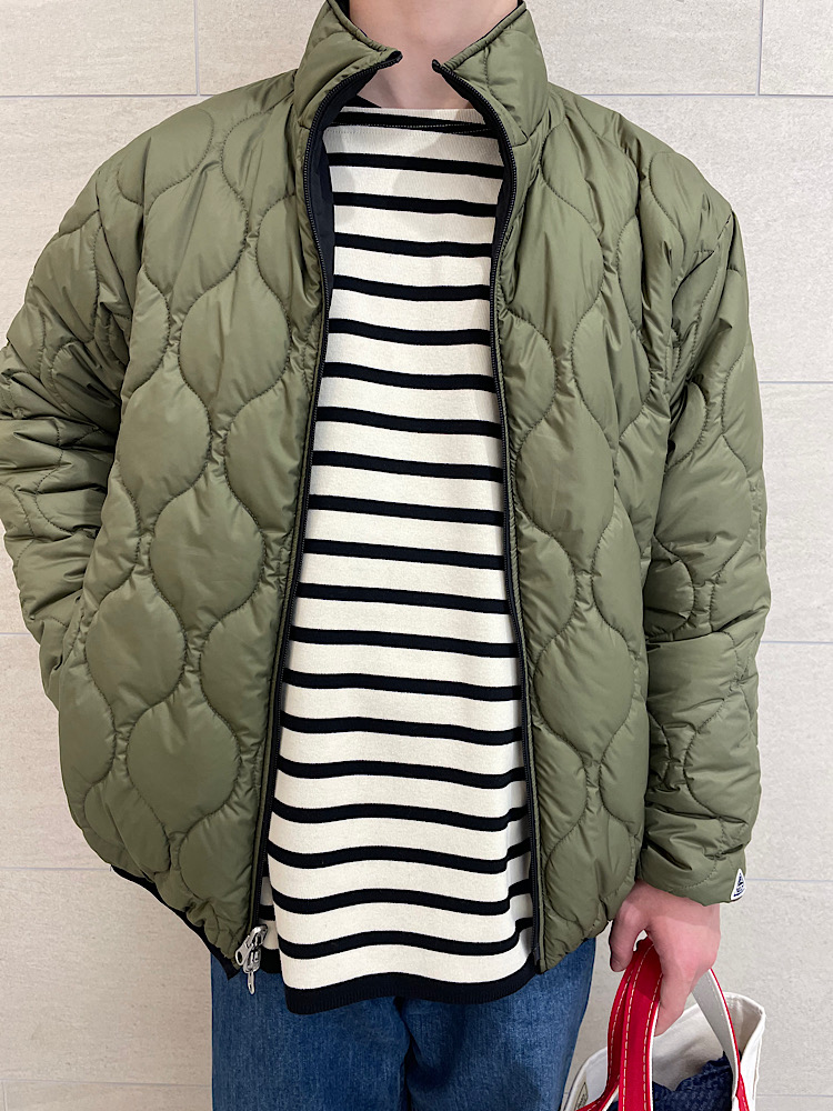 【素材感・着心地】KELTYの中綿リバーシブルブルゾン。ナイロン素材で出来ており、とても軽い着心地。中綿が入っているので防寒にも使える。