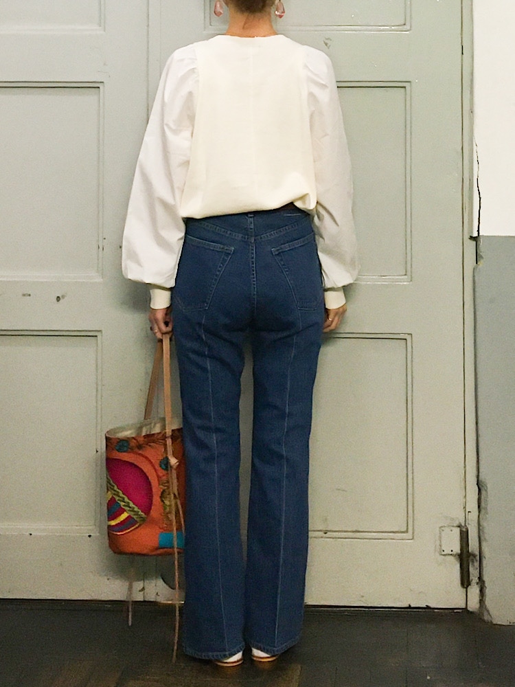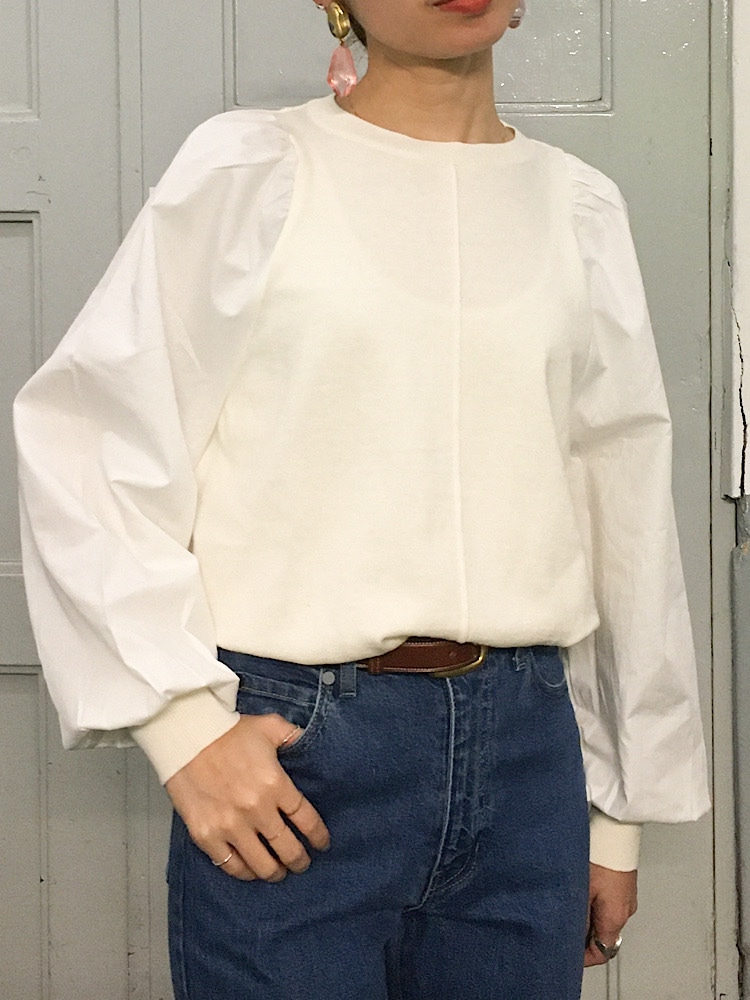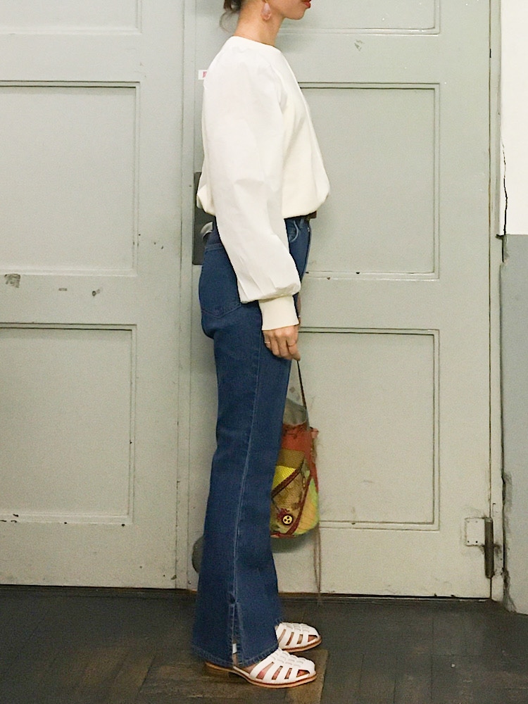 サイズ感:ボディラインを拾わない程度にコンパクトなサイズ感。着丈も短くボトムスを選びません。