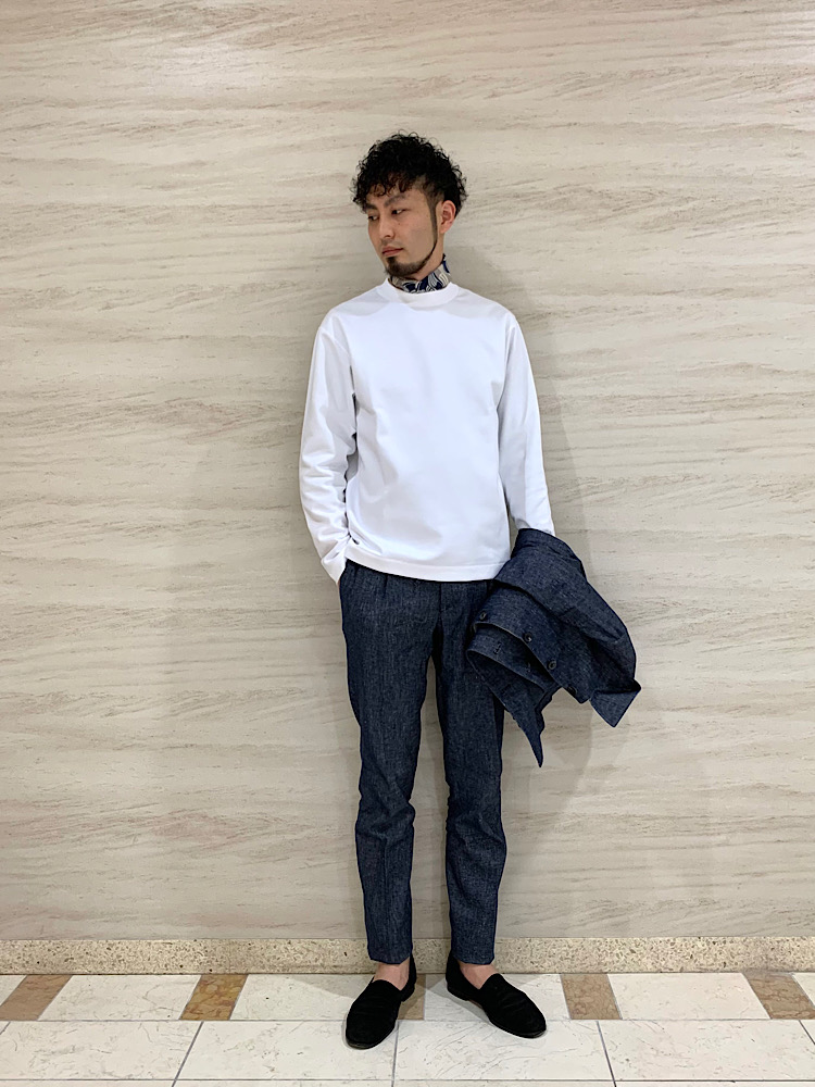 インディゴ素材なのでオンオフ兼用で着用頂けます。