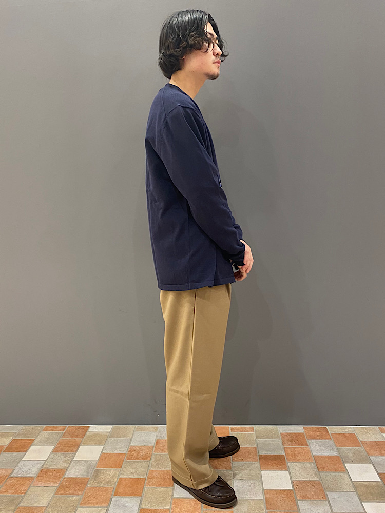【素材感・着心地】コットン、キュプラ、ポリエステル素材です。ややゆとりがありますが、よりリラックス感を出したかったのでワンサイズ上げました。また、ストレッチ性もあるので着やすいです。