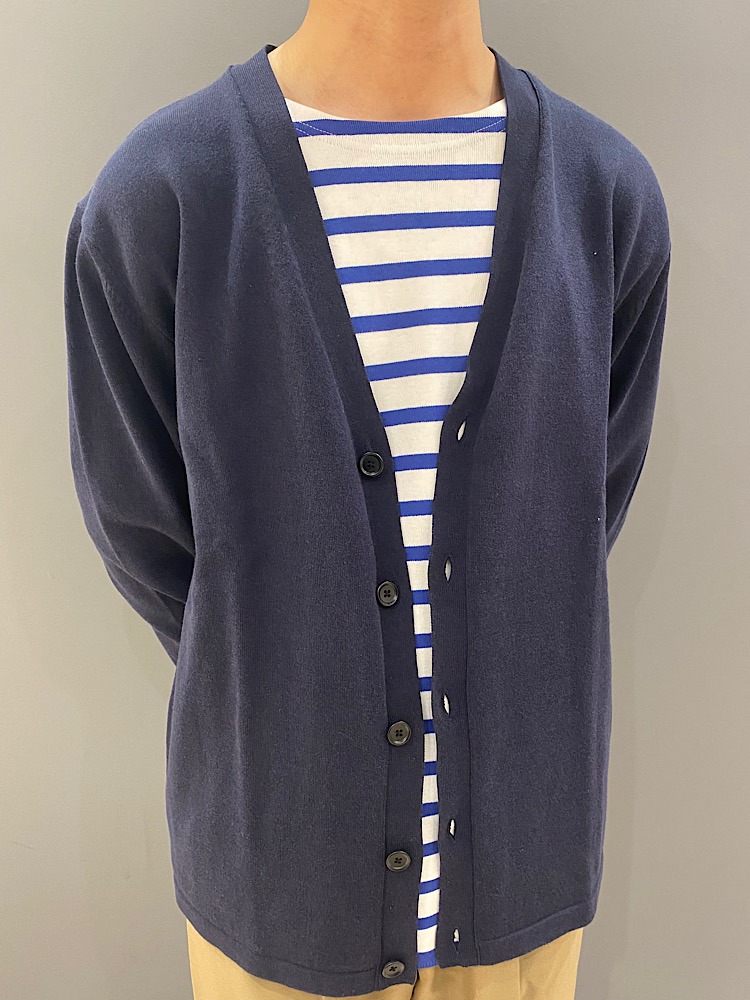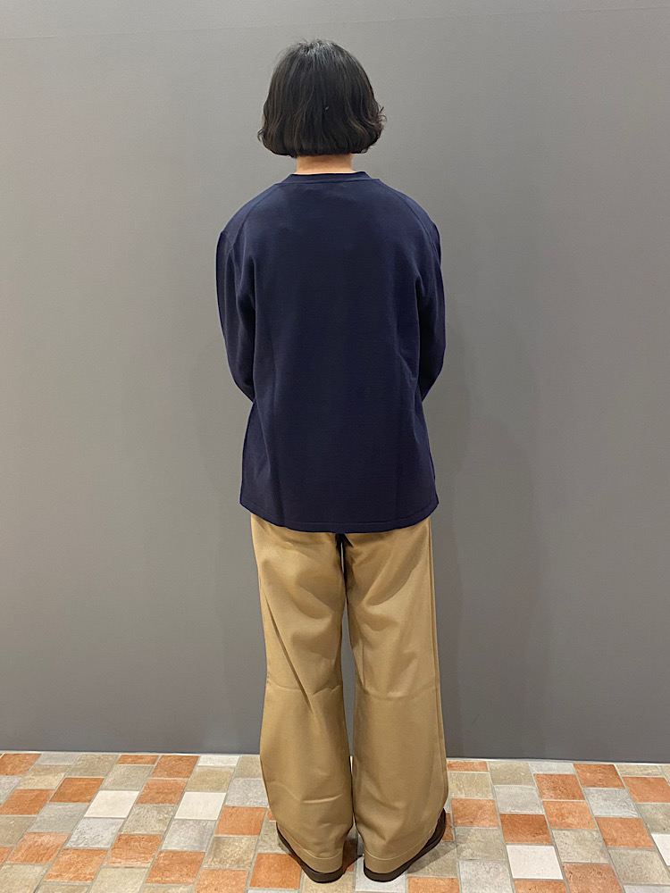 【素材感・着心地】コットン素材です。ややゆとりがあり、バスクシャツライクに着れますが、ネックはそこまで広くなく野暮ったさはないです。1枚で春っぽさがでるアイテムでオススメです。