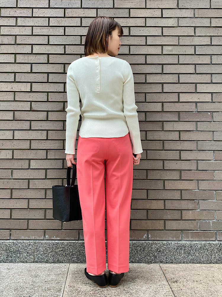 コットンリブニットをきれいめにコーディネート