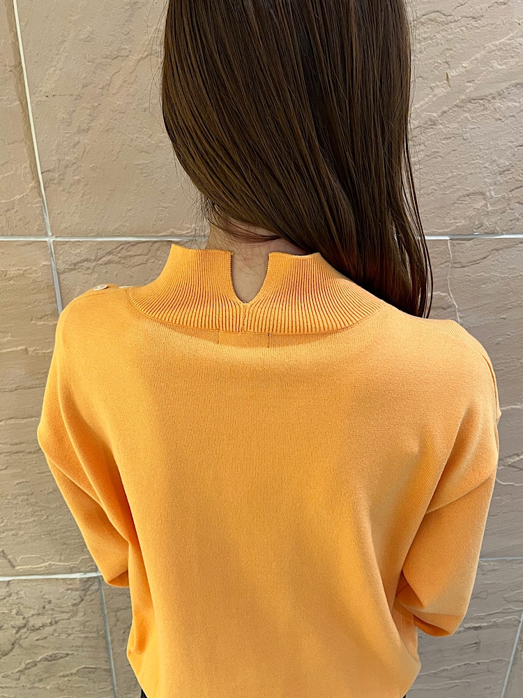 着心地:柔らかな生地感で着心地がよい。首の後ろのスリットがポイントです。