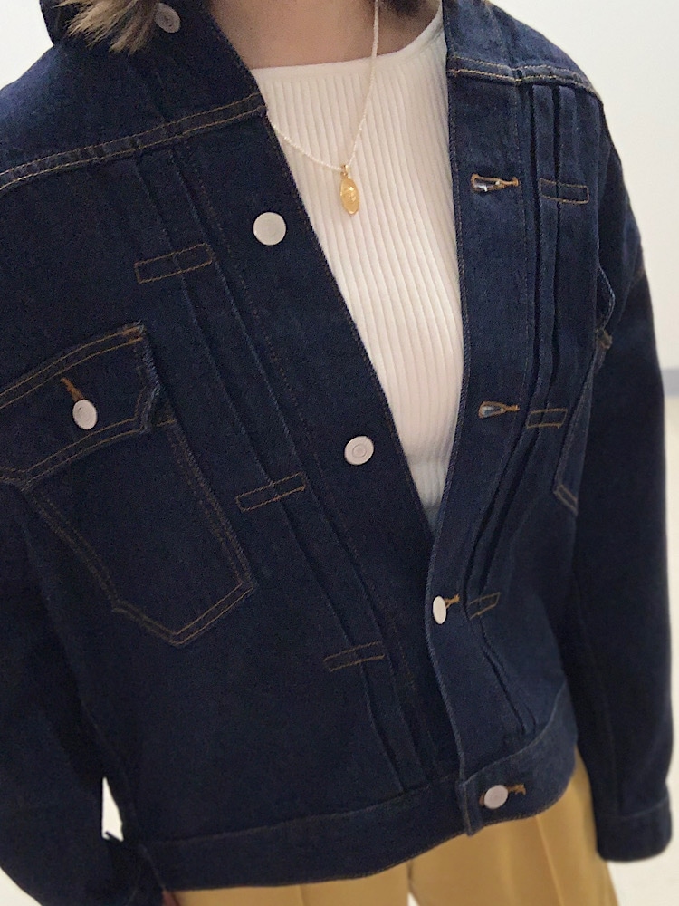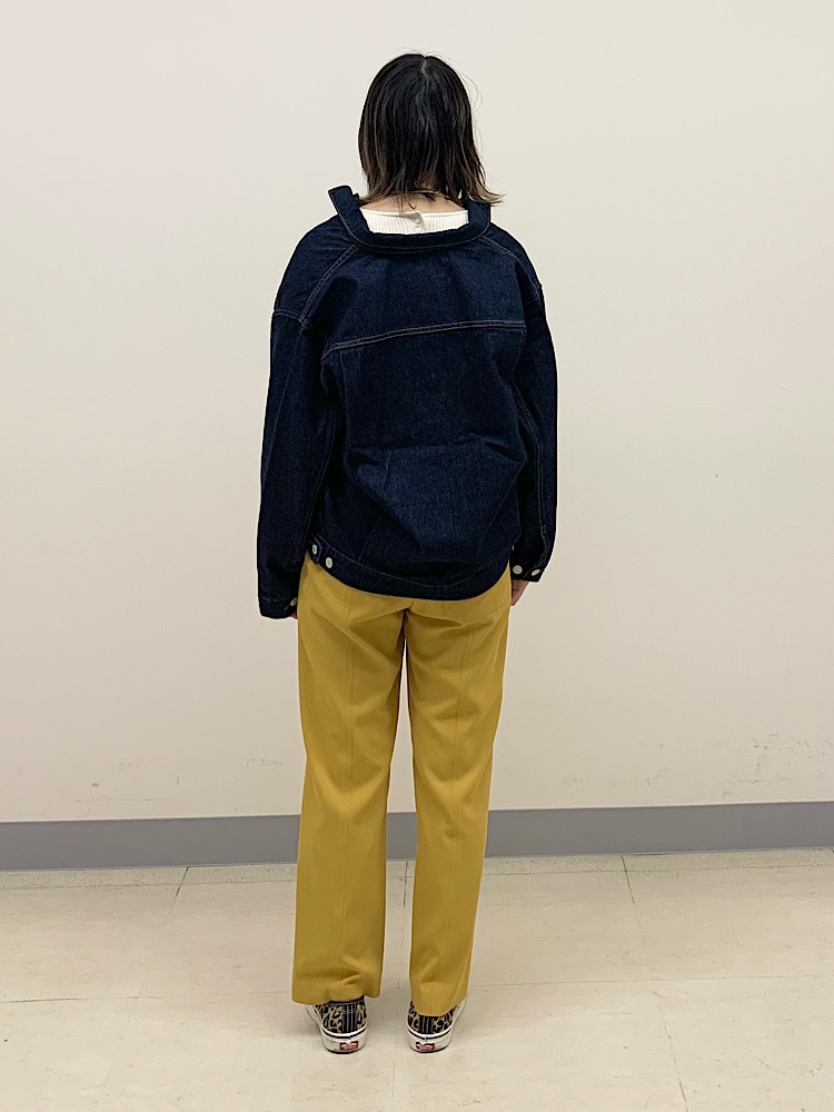 着心地:しっかりしたデニム地。硬過ぎず、レイヤードしやすい。