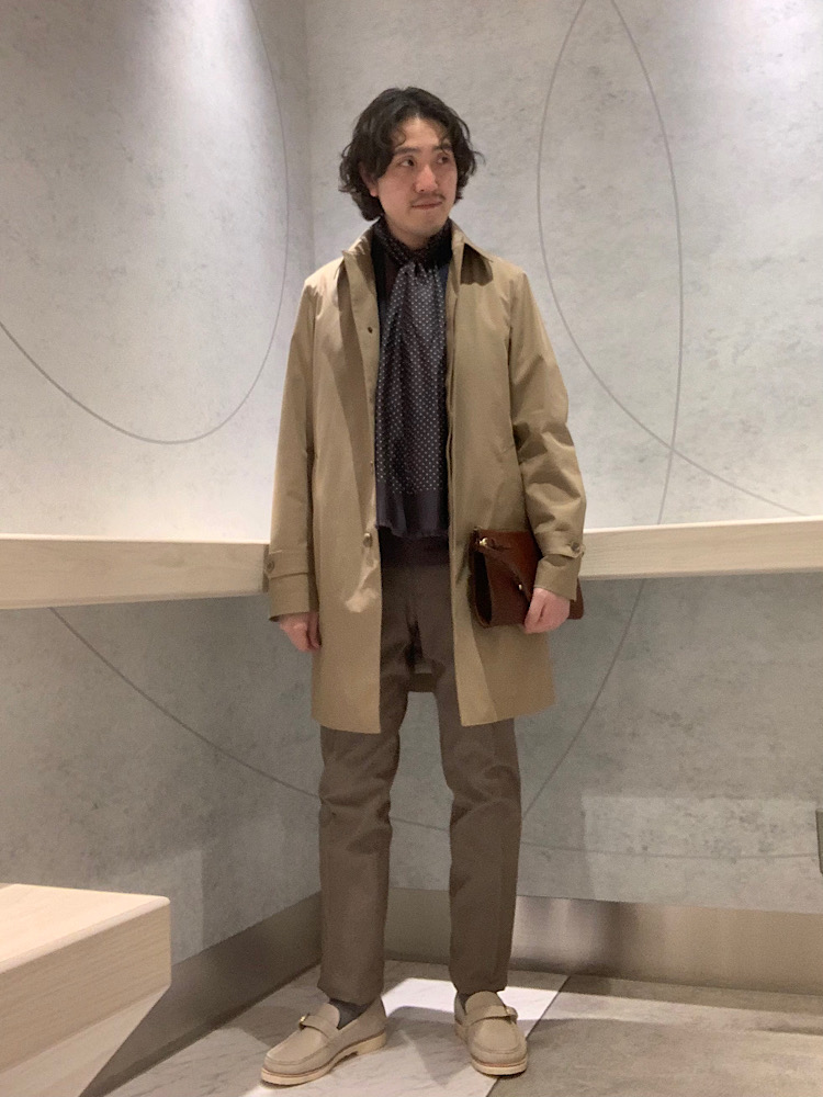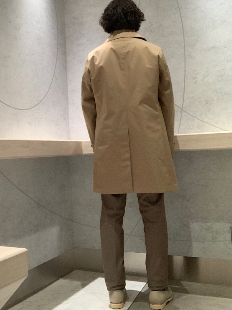 縦長の印象を与えるシルエットだが中にジャケットも着込めるゆとりのある大きさ