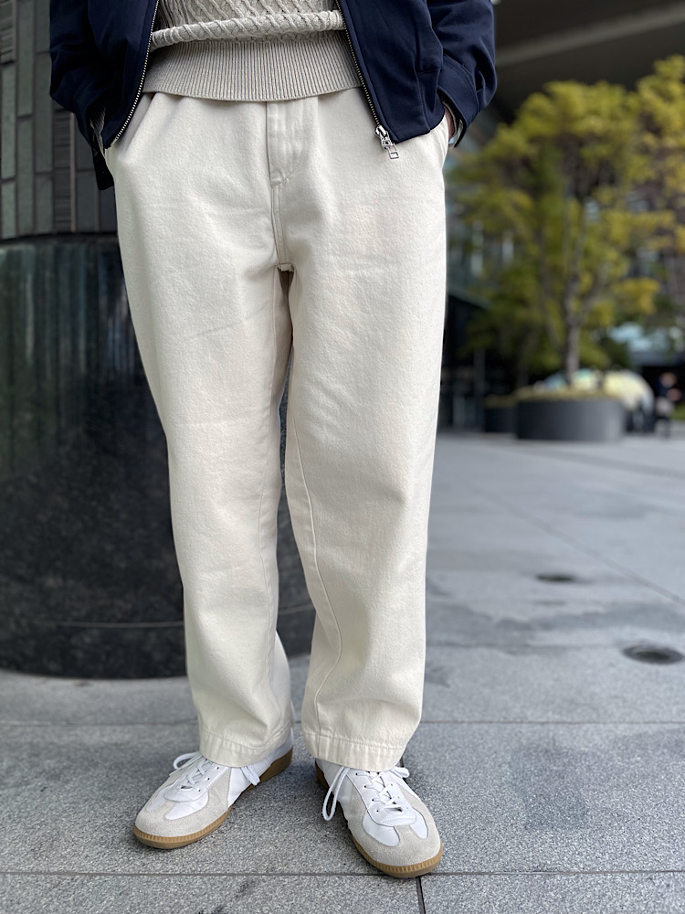 サイズ感:ゆったりとしたデニムパンツです。大きめですが、丈は長すぎず、裾幅ももたつかないような長さに設定されていますので、野暮ったくなり過ぎないパンツです。