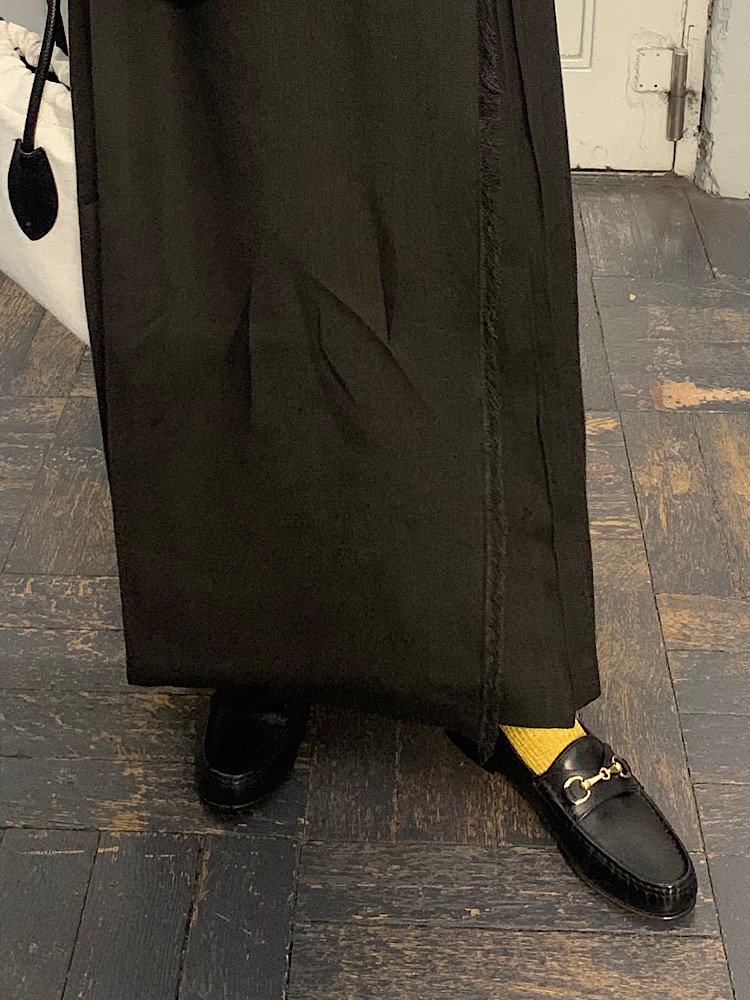 素材感・着心地:麻100%ながらアコーディオンプリーツの高級感が魅力〇透けもなく安心して着用出来ます。