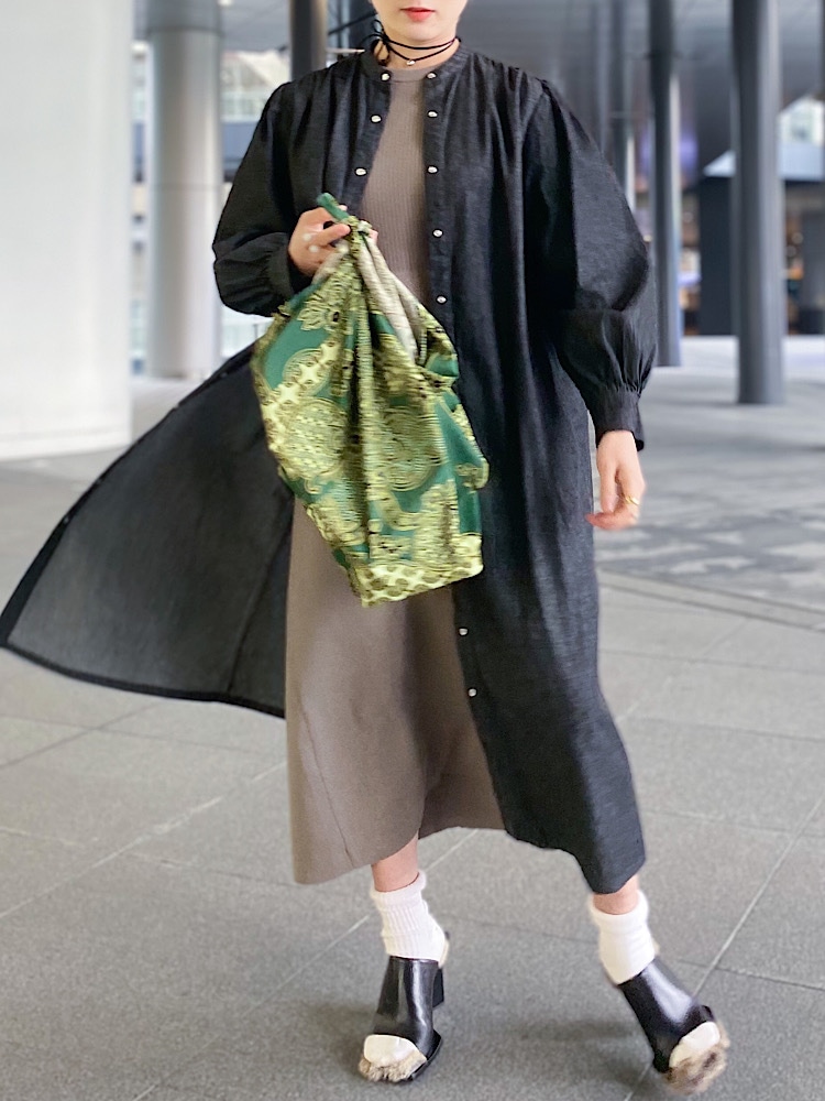 ・着こなしポイント: あえて前後ろ逆にすることにより、お袖がよりボリューム感がです