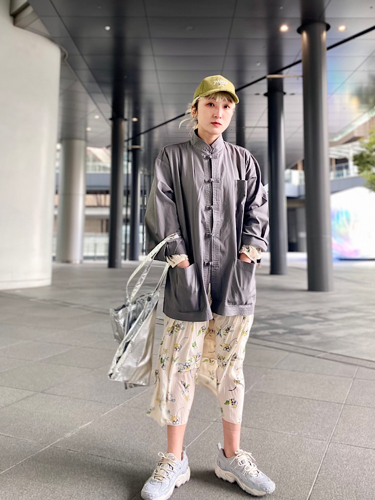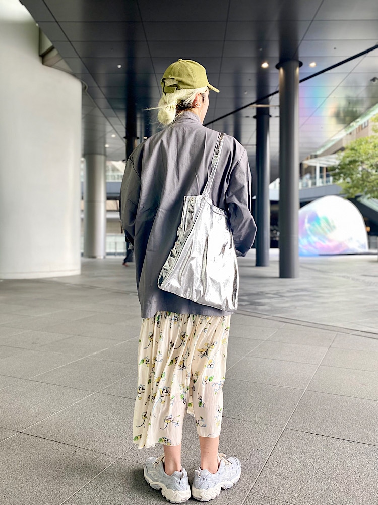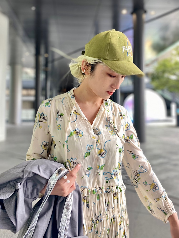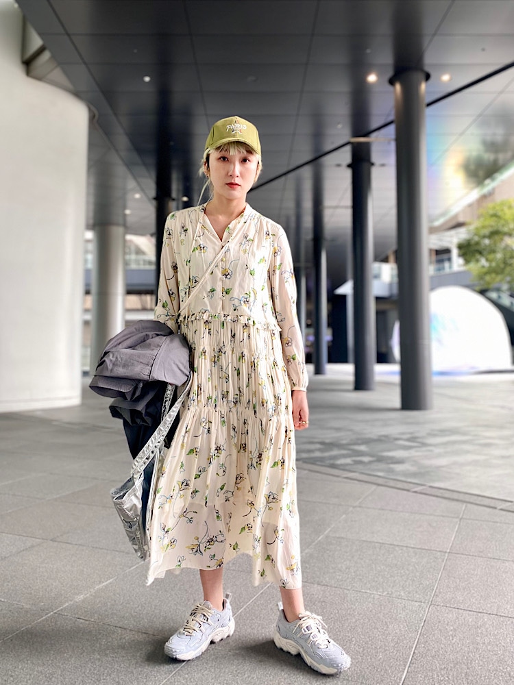 ・着こなしポイント: 春らしい柄物をいれるのがポイントです
