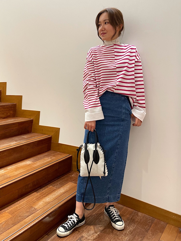 サイズ感:袖幅が少し広めで、着丈はヒップが隠れるくらいです。