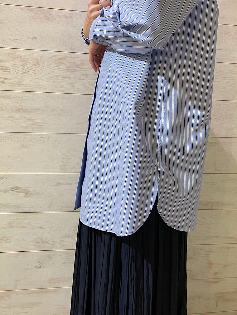 【素材感・着心地】しっかりとしたハリのある生地。後ろスリットが大きいので抜け感がでます。