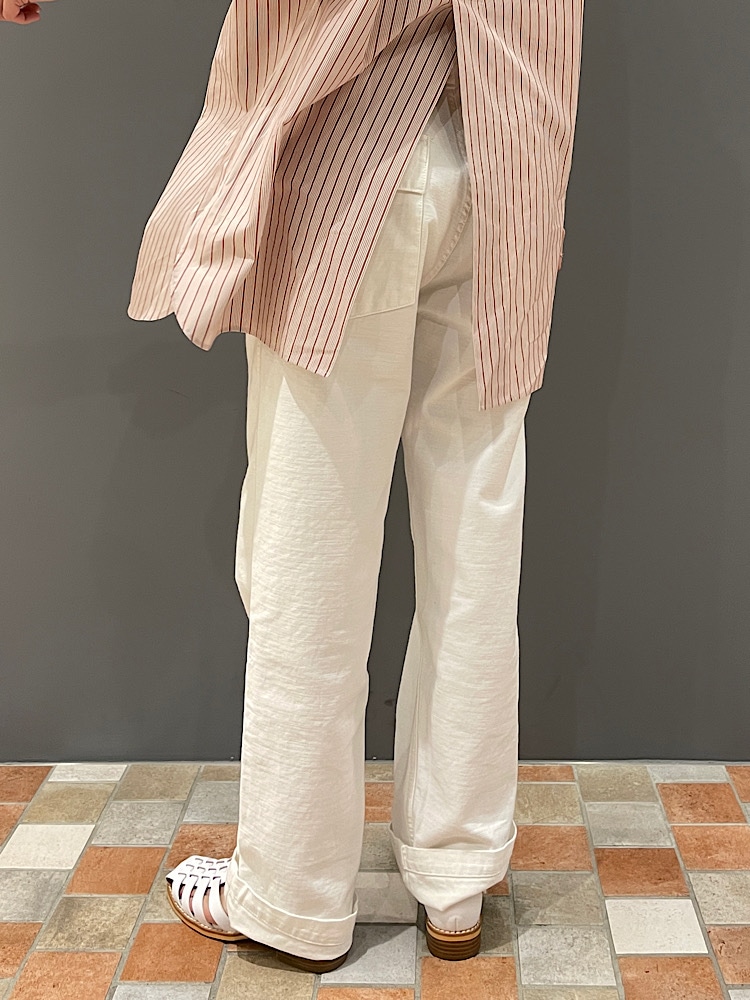 ハリ感のある素材です。後ろにスリットが入っておりバックシルエットも可愛いです。