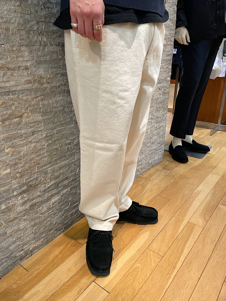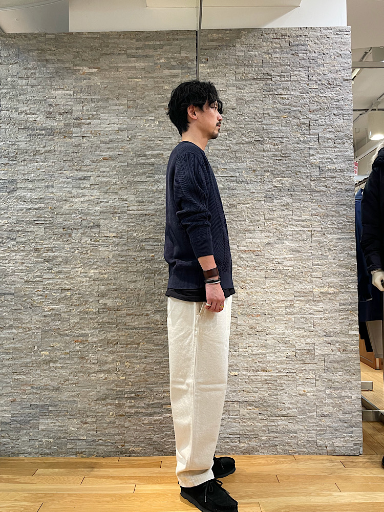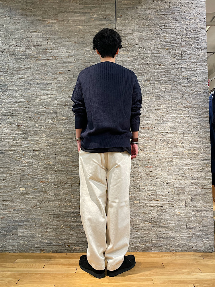 素材感/着心地:柔らかい素材でとても動きやすい。ワイドパンツですが程よい太さになりますので、合わせやすい形となっています。