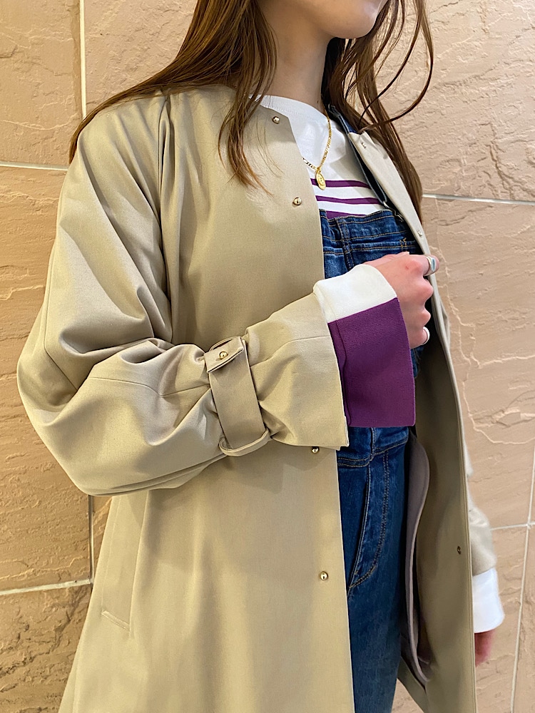 サイズ感:少し袖が短めの作りなので、春らしく腕を見せたり、中のニットを出してお洒落にご着用頂けます。気になる方はサイズを上げても良さそうでした。