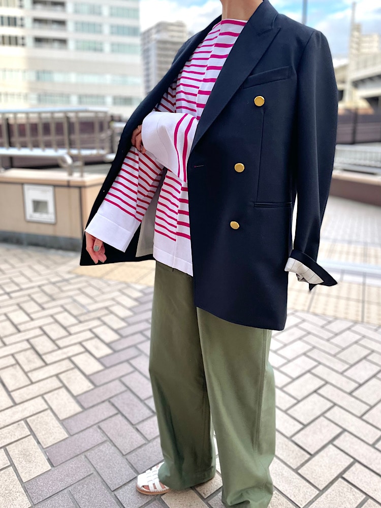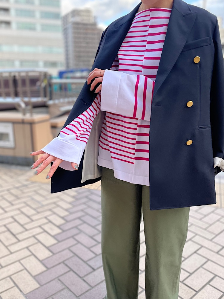 サイズ感 :身幅も袖幅もたっぷりとしていて程よいオーバーサイズです。ボートネックも広く開きすぎず着やすいです。